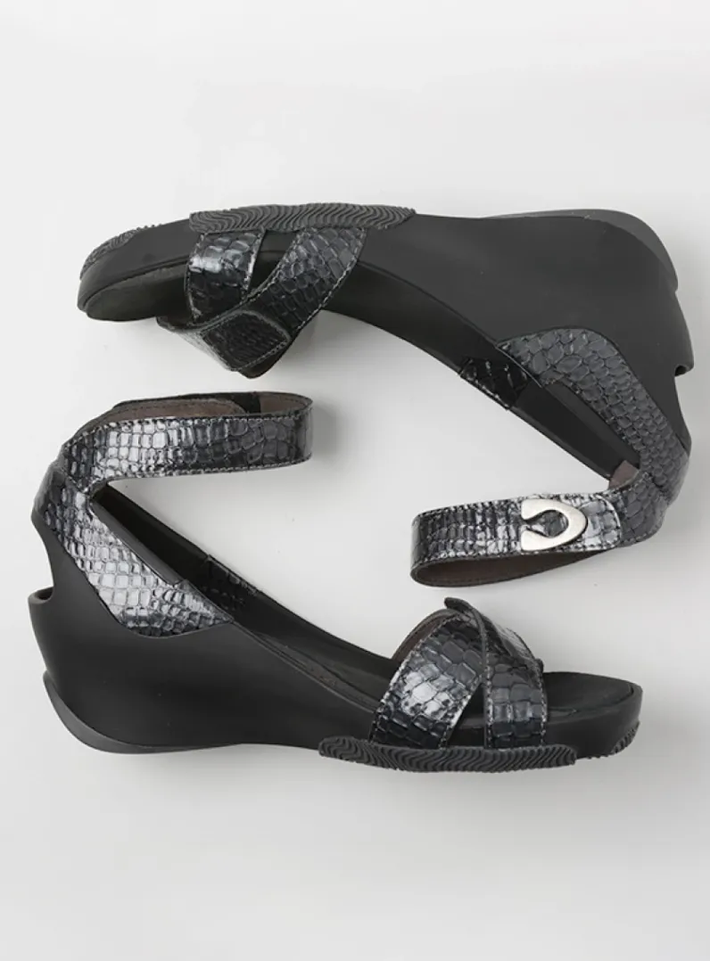 DAMES Wolky Sandalen<Era – antraciet crocolook lakleer