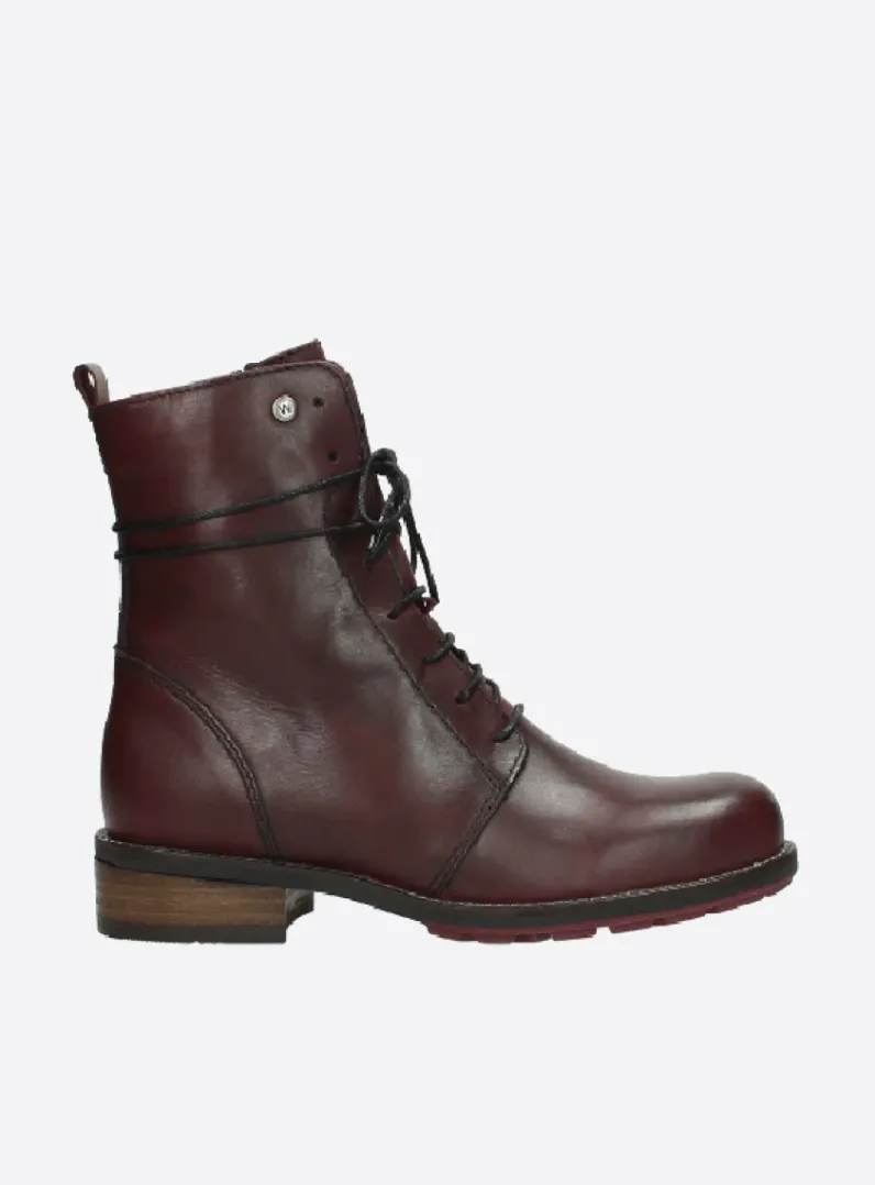 DAMES Wolky Veterlaarzen|Halfhoge Laarzen<Murray – bordeaux leer