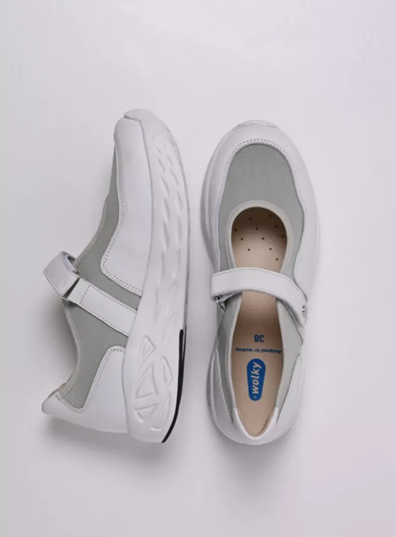 DAMES Wolky Wandelschoenen|Bandschoenen<Spring S2F – wit/grijsgroen combi stretchleer